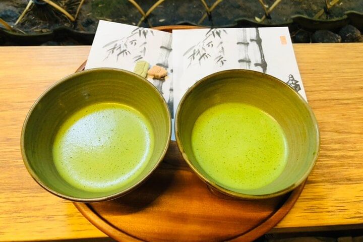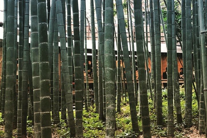 Experience Japanese tea in a teahouse located in a peaceful bamboo grove.